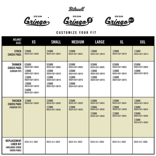 BILTWELL GRINGO, GRINGO S, GRINGO SV ECE R22.06 CHEEK PAD SET [BLACK]